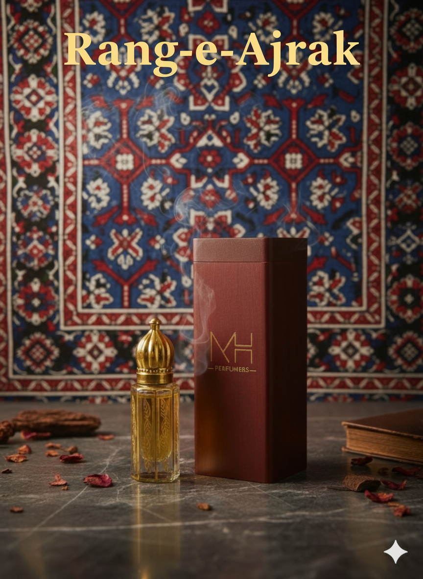 Rang-e-Ajrak celebrates the soulful beauty of Sindhi heritage. With warm spices, earthy woods, and soft floral undertones, this fragrance carries the depth, pride, and richness of tradition in every note.