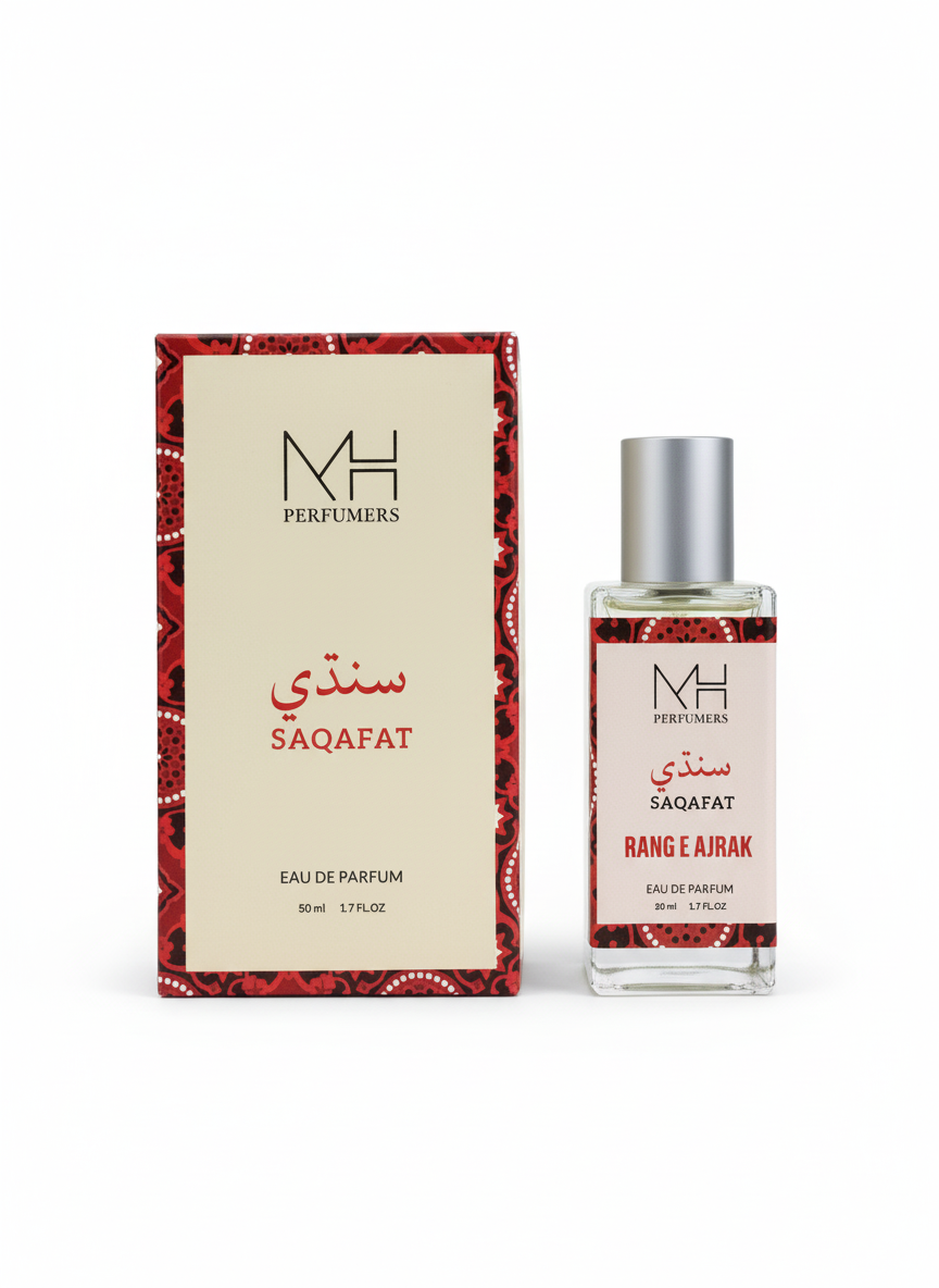 Rang-e-Ajrak celebrates the rich heritage of Sindhi tradition with a fragrance as timeless as the iconic Ajrak pattern.